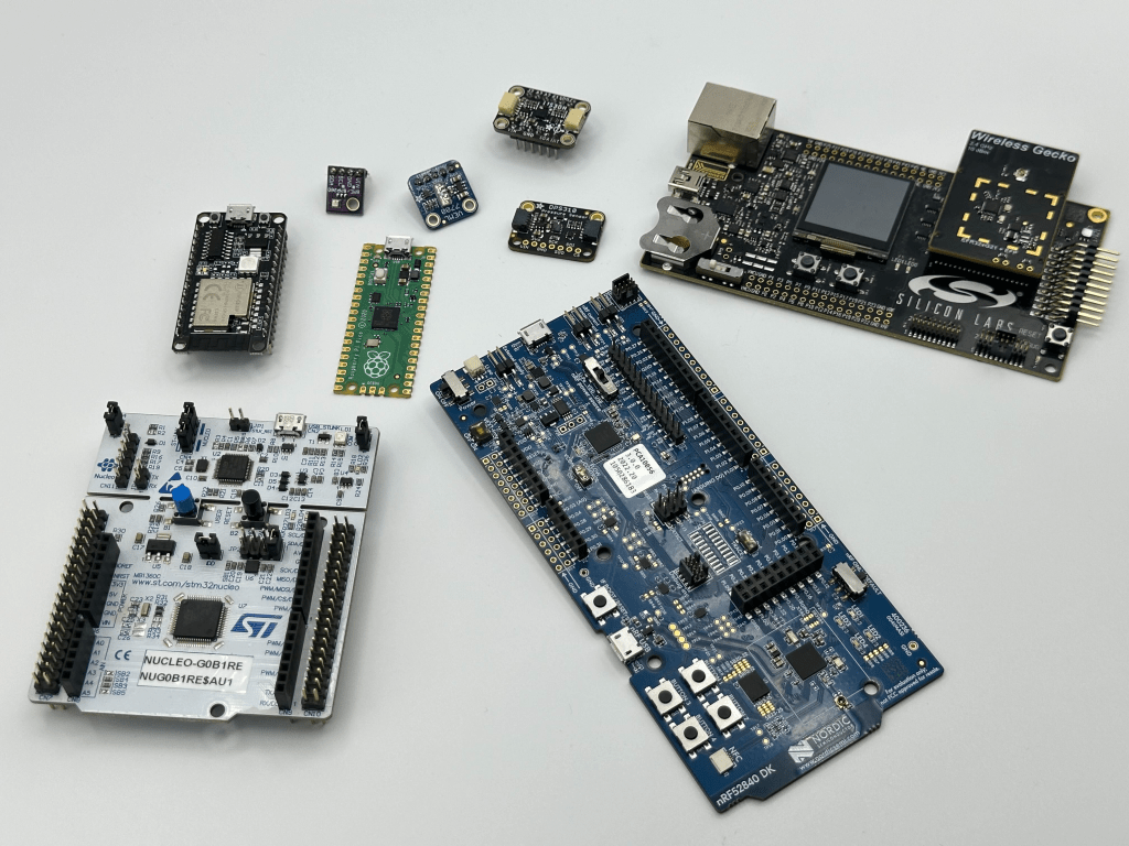 The Zephyr project supports a variety of Microcontroller boards, with different families (e.g: Cortex-M4, Risc-V) and vendors (STMicro, Nordic, NXP, Silabs, etc). To take a closer look at the level of support, we’ve chosen a set of boards with different vendors and families, and have tested different boards with various samples present in the SDK to determine which have out-of-the-box support:
